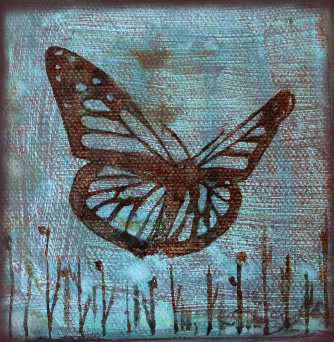 Butterfly 10x10cm Rotwein MixdMedia auf Leinwand